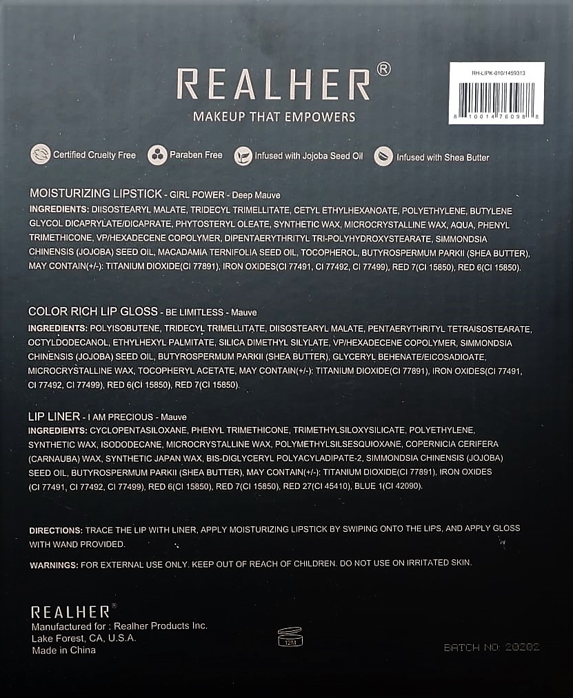 Realher Girl Power Moisturizing Lipstick Be Limitless Lip Gloss I Am Precious Lip Liner And Makeup Bag Set Walmart Com